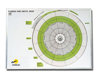 Imputrescible. Fixation murale. Livré avec une boîte de punaises numérotées. Dimensions : 1.25 m x 0.90 m.