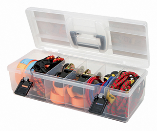 Set de sangles d'arrimage : 4 sangles PES, larg. 25mm - long. 3.5m, 2 avec cliquet et 2 avec verrou. 4 sangles à bagage crochet fer diam. 8.0mm x 60cm. 2 sangles à bagage crochet plastique, diam. 8.0mm x 55cm. 6 sangles en maille 4.5mm X 300mm.