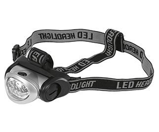 Très longue durée d'utilisation grâce à une consommation d'énergie faible. Bonne visibilité grâce à 10 LED. Bandes élastiques pour une fixation facile à la tête. Piles non fournies.