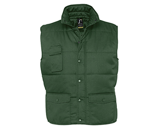 Gilet multi poches. 65 % polyester, 35 % coton. Matelassage 100% polyester. Coloris : kaki. Tailles : S à XXL.